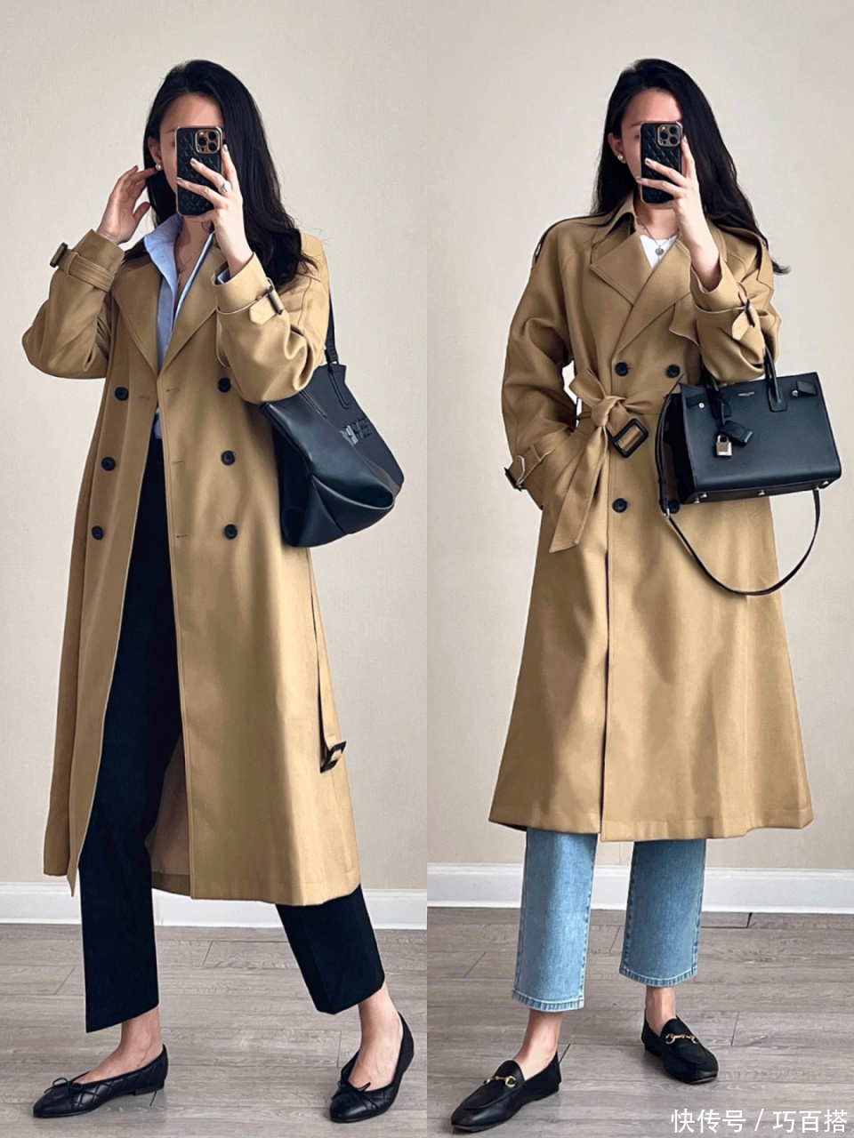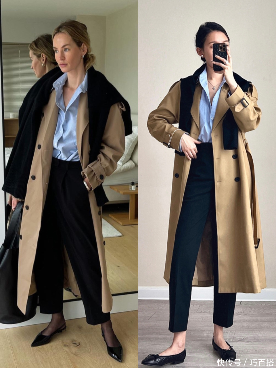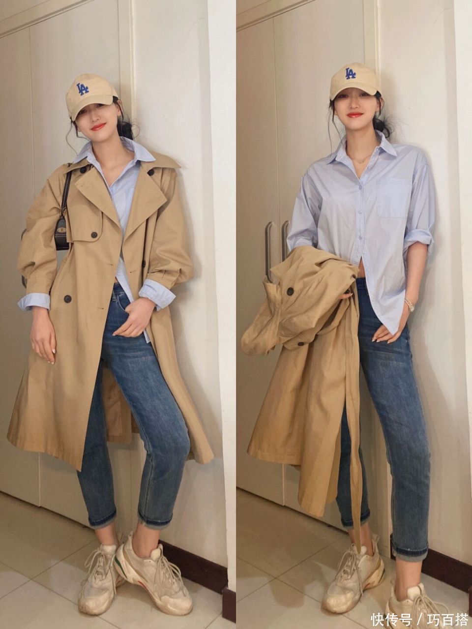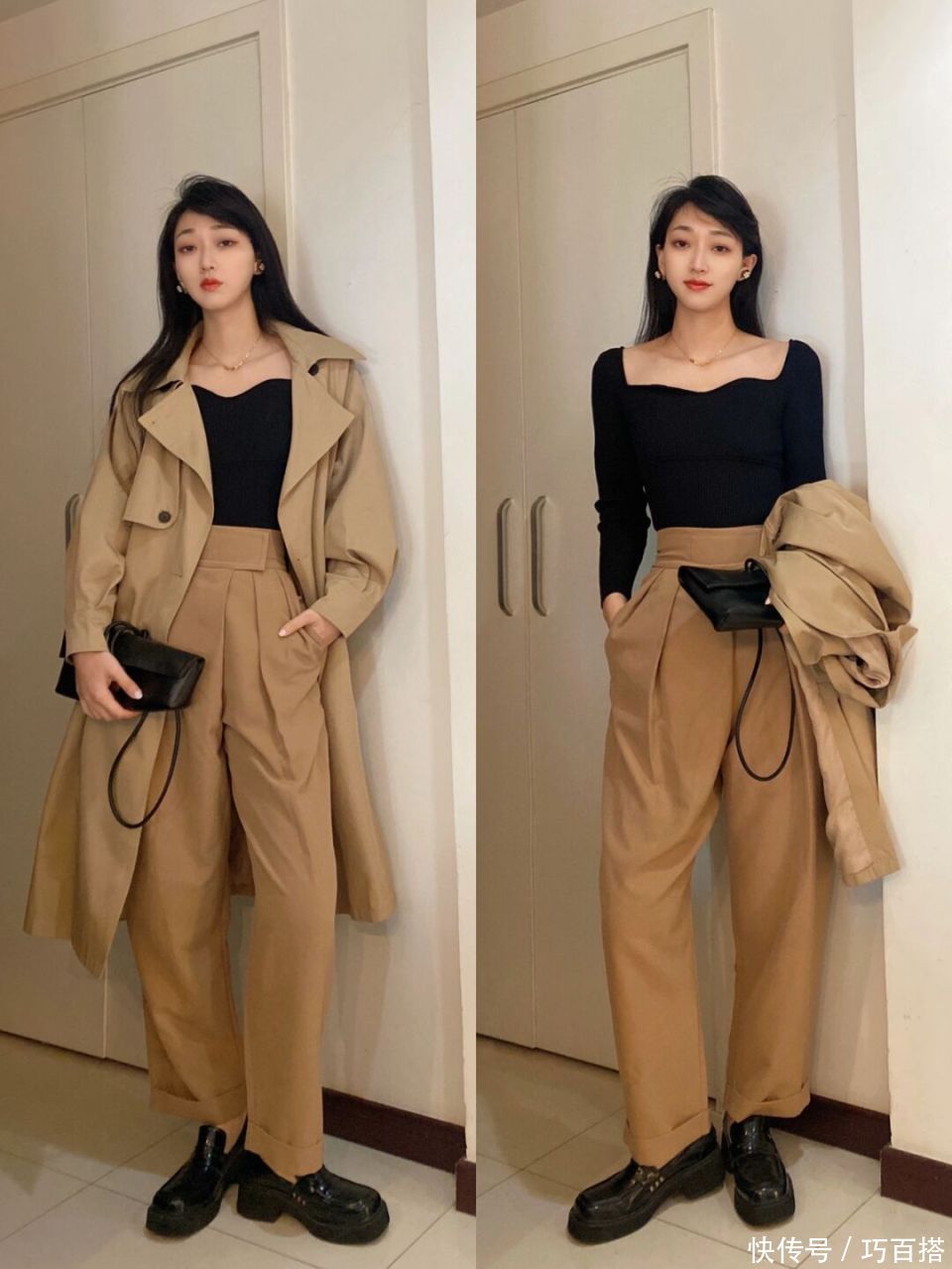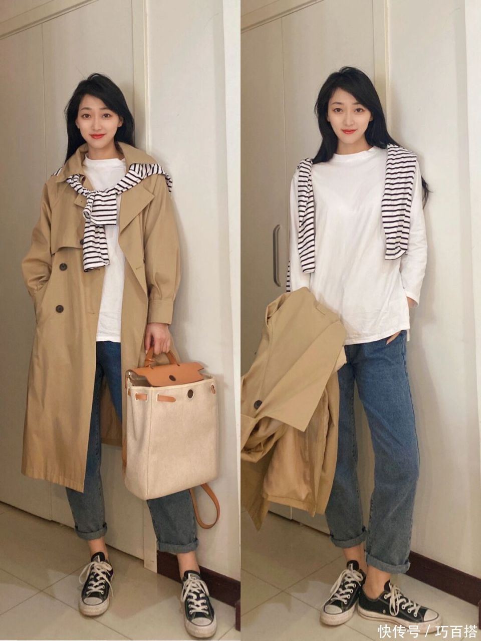 第二,驼色风衣也不错单独搭配衬衫大要圆领T恤,心爱极简时势的姐妹不错照着博主的念念路选款和搭配,上班上学不错平直照搬照抄。