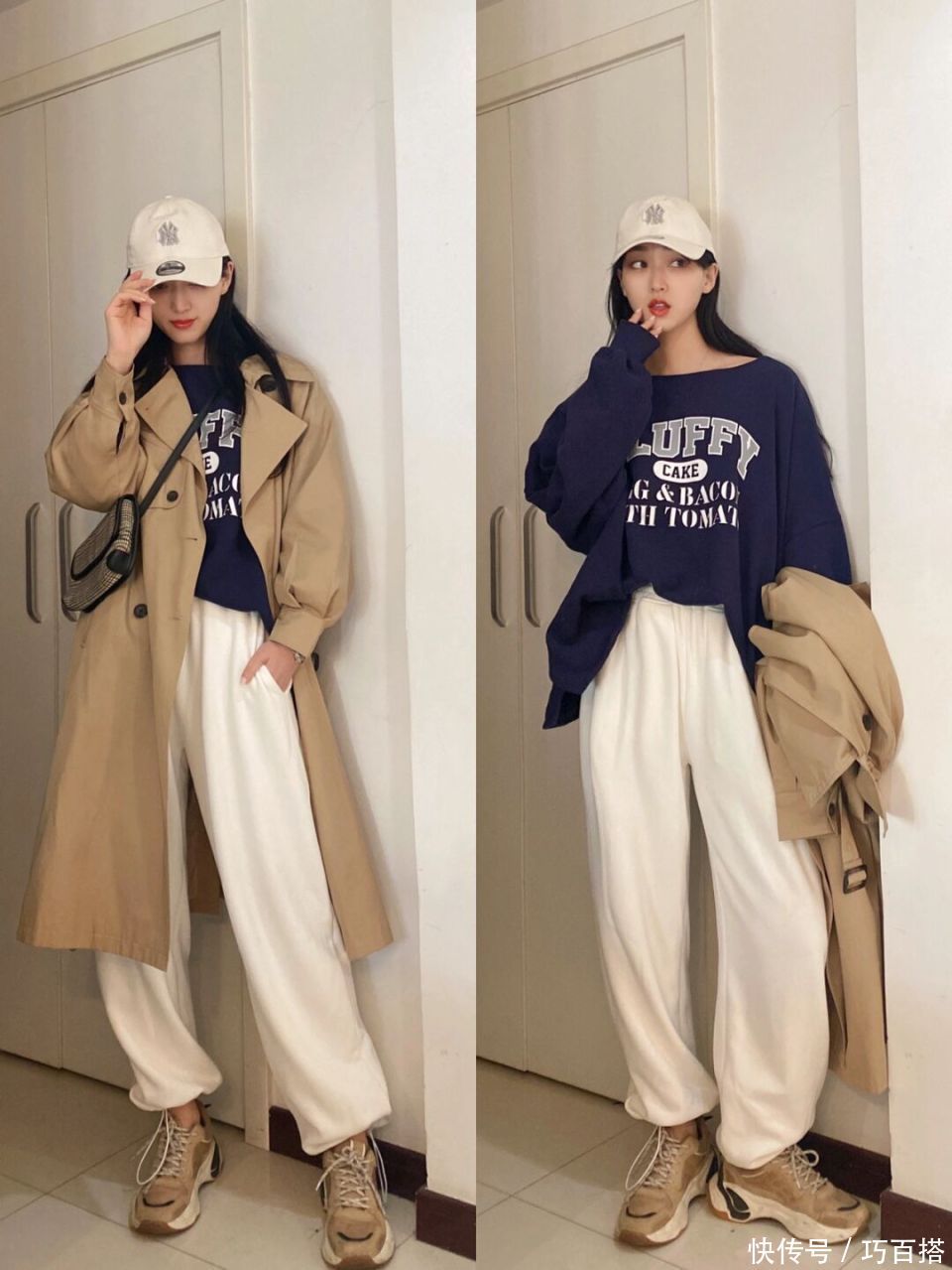 博主身上的统共色系,是驼色的范例搭档,白色和玄色是最推选人人学习模仿的,不论把它安排到那儿,都能和驼色酿成呼应,蓝色手脚第二选项,与驼色搭配出错的几率为0。